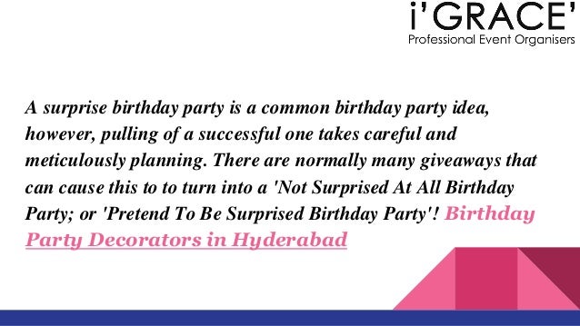 Surprise Party In Hyderabad Surprise Event Planners In Hyderabad Explore all upcoming events in hyderabad, live concerts, conferences, college events, exhibitions, things to do in hyderabad with meraevents also book your tickets online for all popular hyderabad events happening in and nearby the hyderabad which matches your mood.